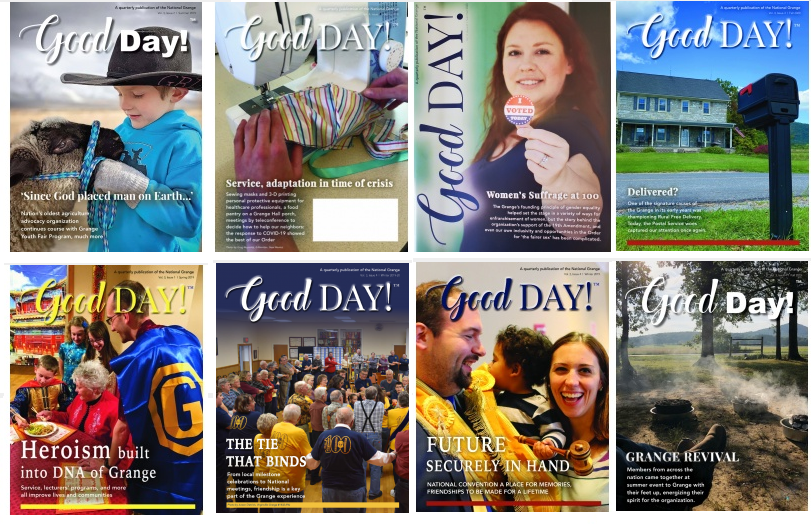 Don’t miss an issue of the National Grange quarterly magazine, Good Day! For just $16 a year, you will receive four issues of this full-color publication mailed to your door filled with articles, stories, recipes, and so much more. The magazine aims to keep readers up-to-date with Grange happenings and information vital to Grange members. Now in its 9th year!