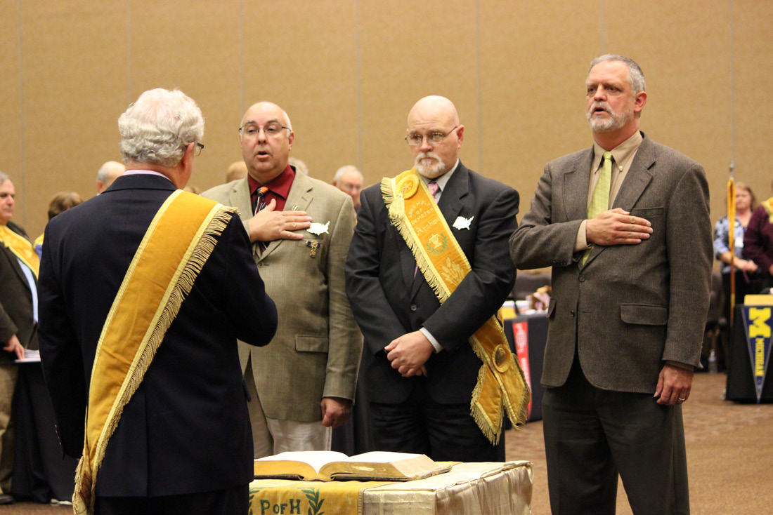 “In installing you as a member of the Executive Committee for the Constitutional term, we remind you, and your associates that your office carries important duties and grave responsibilities,” High Priest Bruce Croucher said. “As an Executive Committee, you are responsible for the custody of the invested funds of the Grange, and from you is expected such advice and counsel as will encourage your fellow officers in the faithful discharge of their duties said Worthy High Priest Croucher ss an Executive Committee, but also and only in conjunction with the Worthy Master, you are authorized, between regular meetings of your Grange, in times of emergency or need, to act for and in the name of the Grange itself.” This charge should look familiar to any member who has witnessed the installation ceremony performed at their local Grange. It is the same wording that is used at all levels of the Grange. But what does that statement mean? When broken down, it tells the newly elected member that their position is one with significant responsibility within the Grange. The primary job of the Executive Committee is to be an advisory board for the Grange and to assist officers in performing their duties adequately. The committee has fiduciary responsibility for the Grange, making sure that the funds of the Grange are used appropriately. Lastly, and most importantly, the Executive Committee has the authority to act in the name of the Grange when necessary. However, they cannot act alone but, must work with the Worthy Master. Following the installation, National Master Ed Luttrell presented immediate past Executive Committee Chairwoman Betsy Huber with a Past Officers pin and thanked her for her service to the National Grange. |