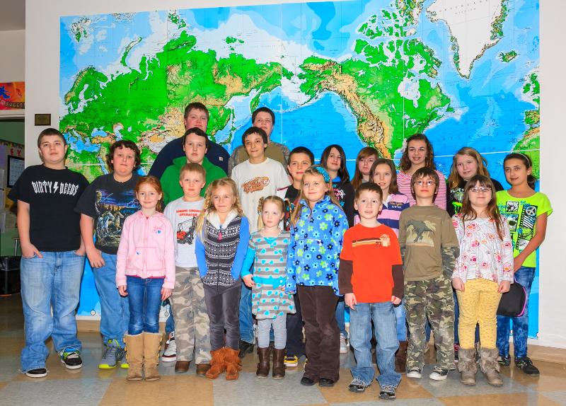 The school purchased a plaque and officially dedicated the map on Wednesday, March 6th. Gray said, “Twenty-one members of the Junior Grange were given permission to leave class to attend the dedication.” Two local newspapers also attended the dedication. The included photo shows the 21 Junior Grangers with the new map. |