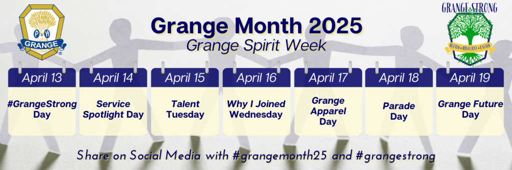 April is Grange Month, a time dedicated to showcasing our identity, principles, and future aspirations. This is our time to open our doors, engage new members, and reaffirm the Grange’s vital role in our communities – not solely for our historical achievements, but for the meaningful impact we’re making today and more importantly the milestones we aim to reach tomorrow.