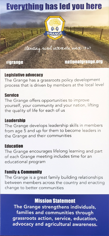 E-Membership is a new class of membership that keeps you informed of legislative work from a non-partisan point of view as well as keeping you up with the latest achievements of the Grange. E-Membership gives you access to many of the quality financial benefits that Grange members have traditionally enjoyed. It also gives you the opportunity of being an important part of America’s oldest family based organization.