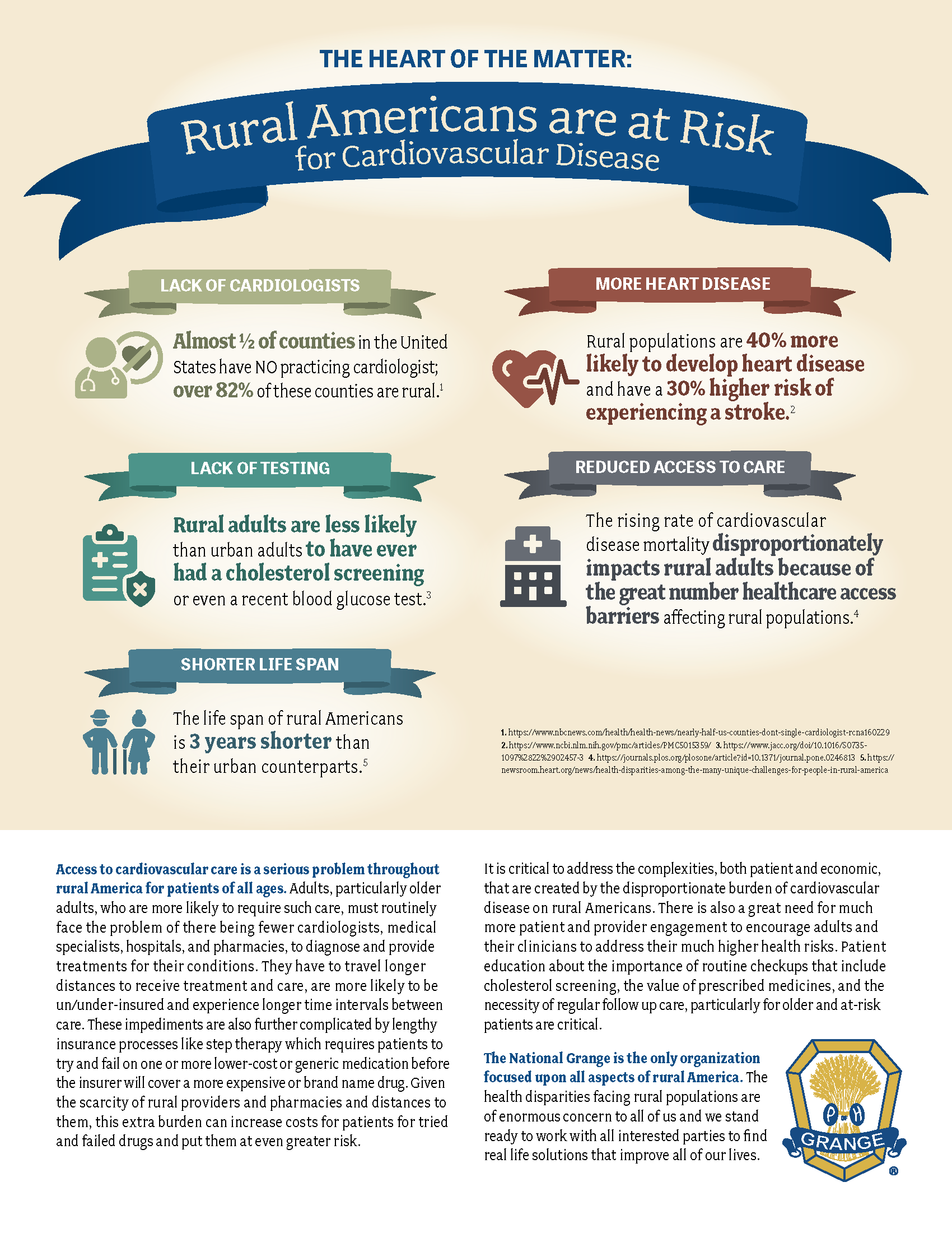 Access to cardiovascular care is a serious problem throughout rural America for patients of all ages. The National Grange prepared an infographic that demonstrates the disproportionate impacts on rural populations because of the great number of access barriers.